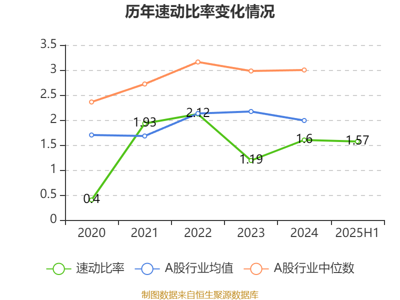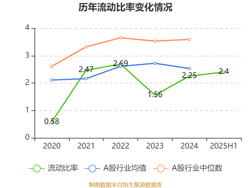 2025年上半年,公司流动比率为2.40,速动比率为1.57。