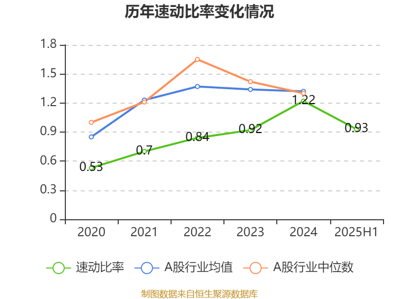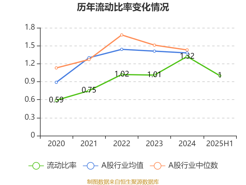 2025年上半年,公司流动比率为1.00,速动比率为0.93。