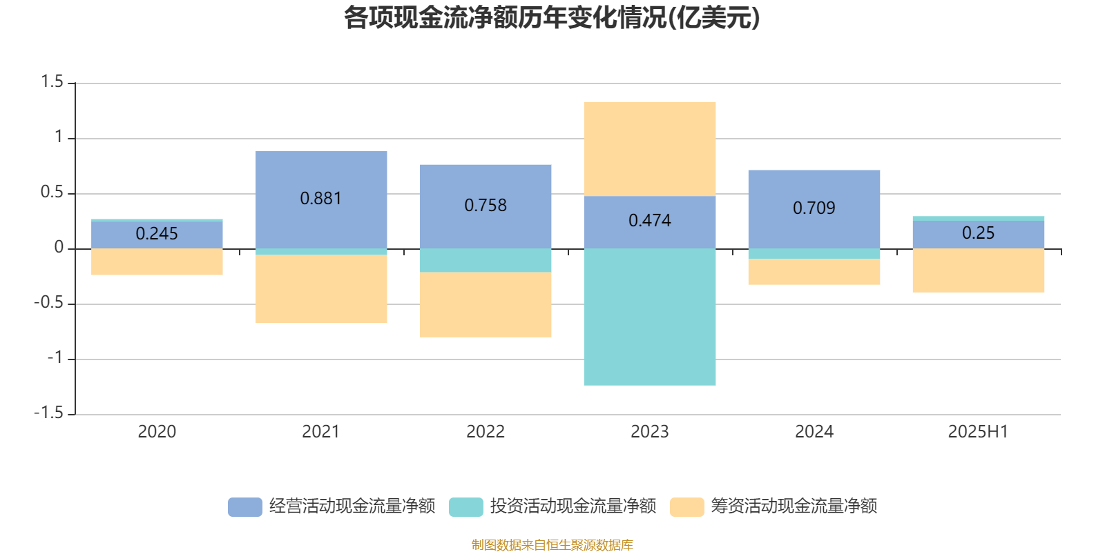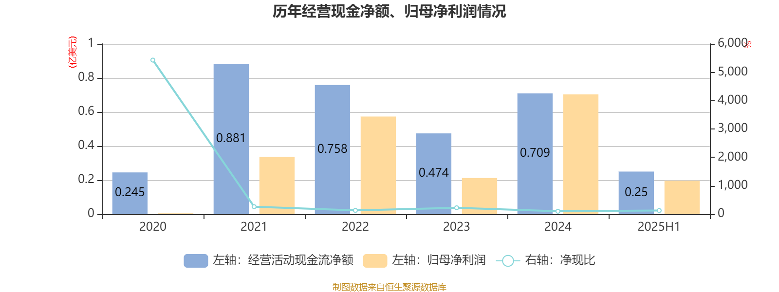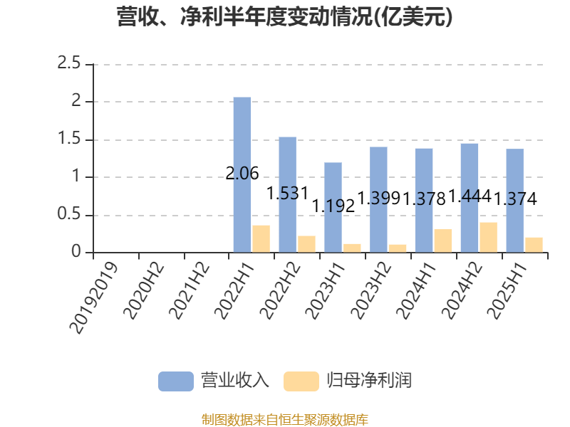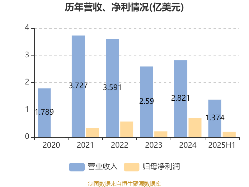 2025年上半年,公司经营活动现金流净额为2501.1万美元;筹资活动现金流净额-3987.7万美元;投资活动现金流净额419.2万美元。