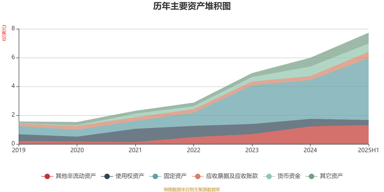 资产重大变化方面,截至2025年上半年,公司固定资产较上期末增加59.08%,占公司总资产比重上升10.49个百分点;使用权资产较上期末减少32.39%,占公司总资产比重下降4.16个百分点;货币资金较上期末减少12.79%,占公司总资产比重下降3.57个百分点;其他非流动资产较上期末增加7.65%,占公司总资产比重下降3.37个百分点。