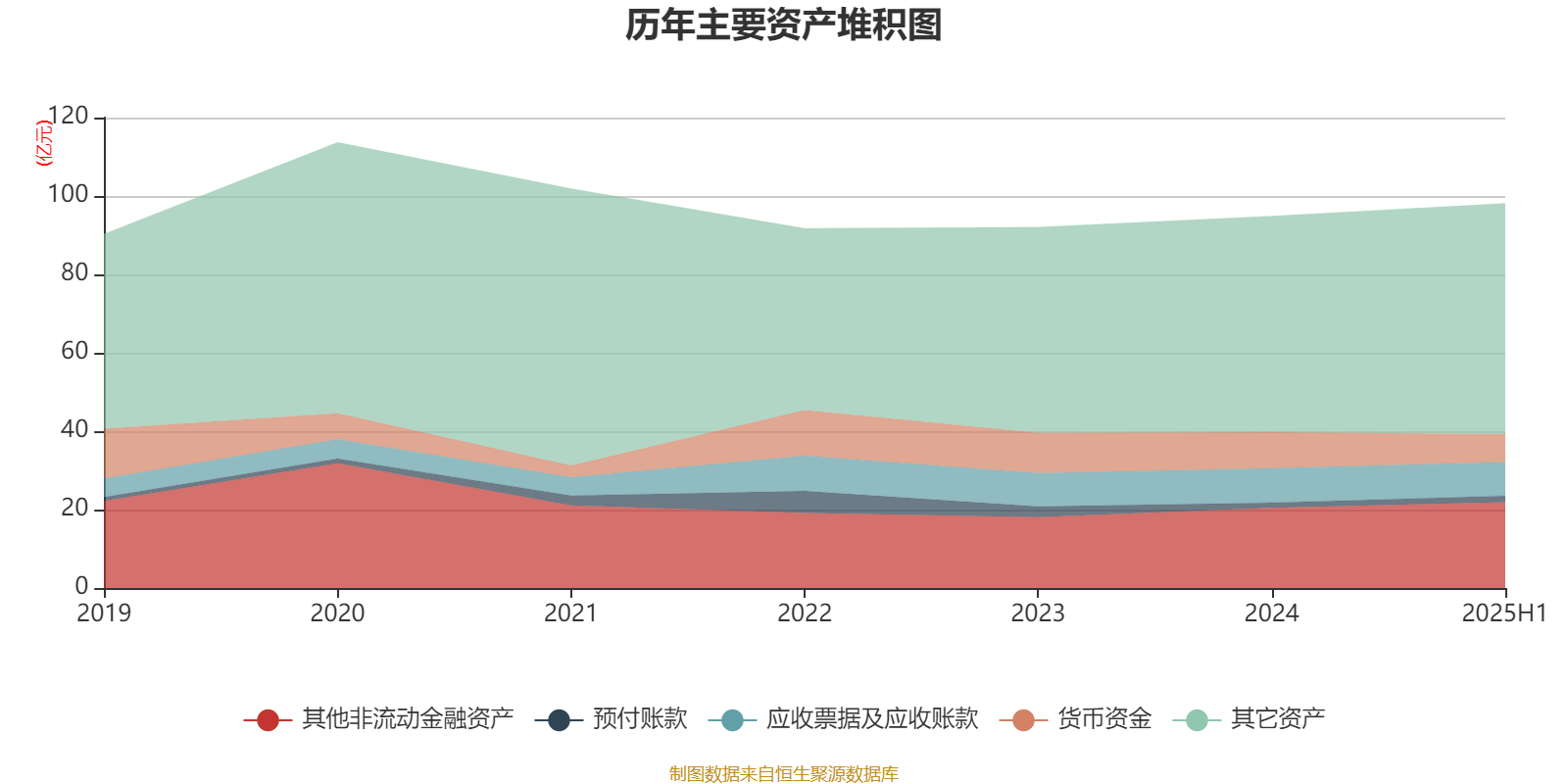 资产重大变化方面,截至2025年上半年,公司货币资金较上期末减少22.19%,占公司总资产比重下降2.39个百分点;交易性金融资产占公司总资产的2.07%,上期末为0;其他非流动金融资产较上期末增加7.07%,占公司总资产比重上升0.77个百分点;应收票据及应收账款较上期末减少2.25%,占公司总资产比重下降0.51个百分点。