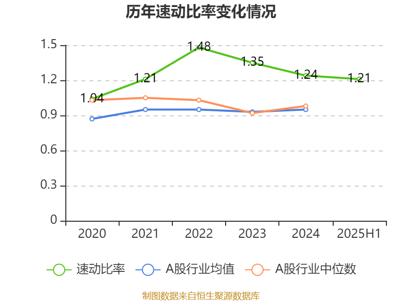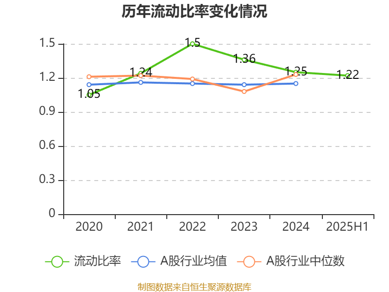 2025年上半年,公司流动比率为1.22,速动比率为1.21。