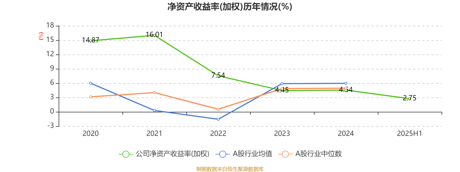 2025年上半年,公司平均净资产收益率为2.75%,较上年同期下降0.7个百分点。