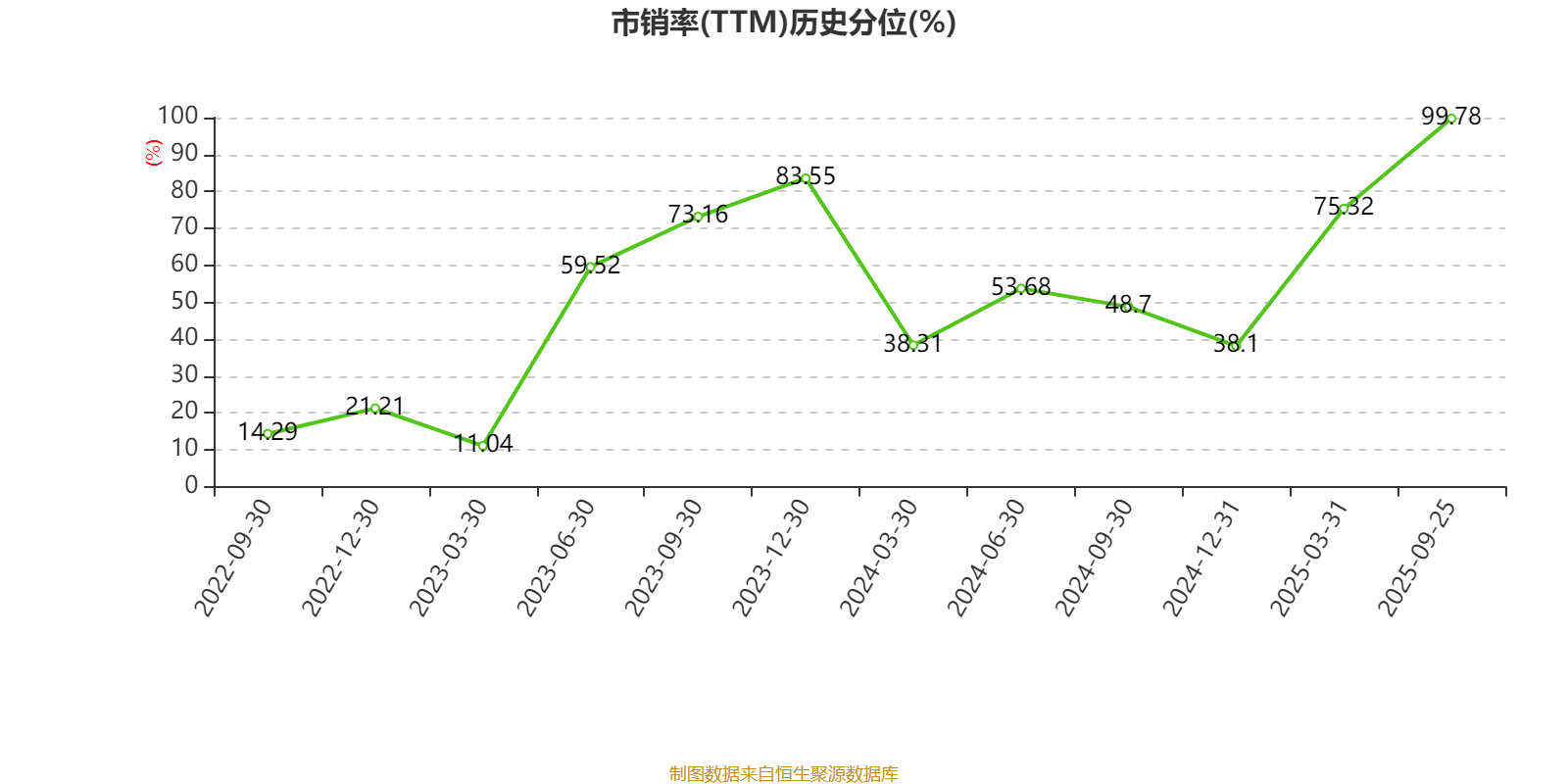 以9月25日收盘价计算,德银天下目前市盈率(TTM)约34.8倍,市净率(TTM)约1.34倍,市销率(TTM)约1.84倍。