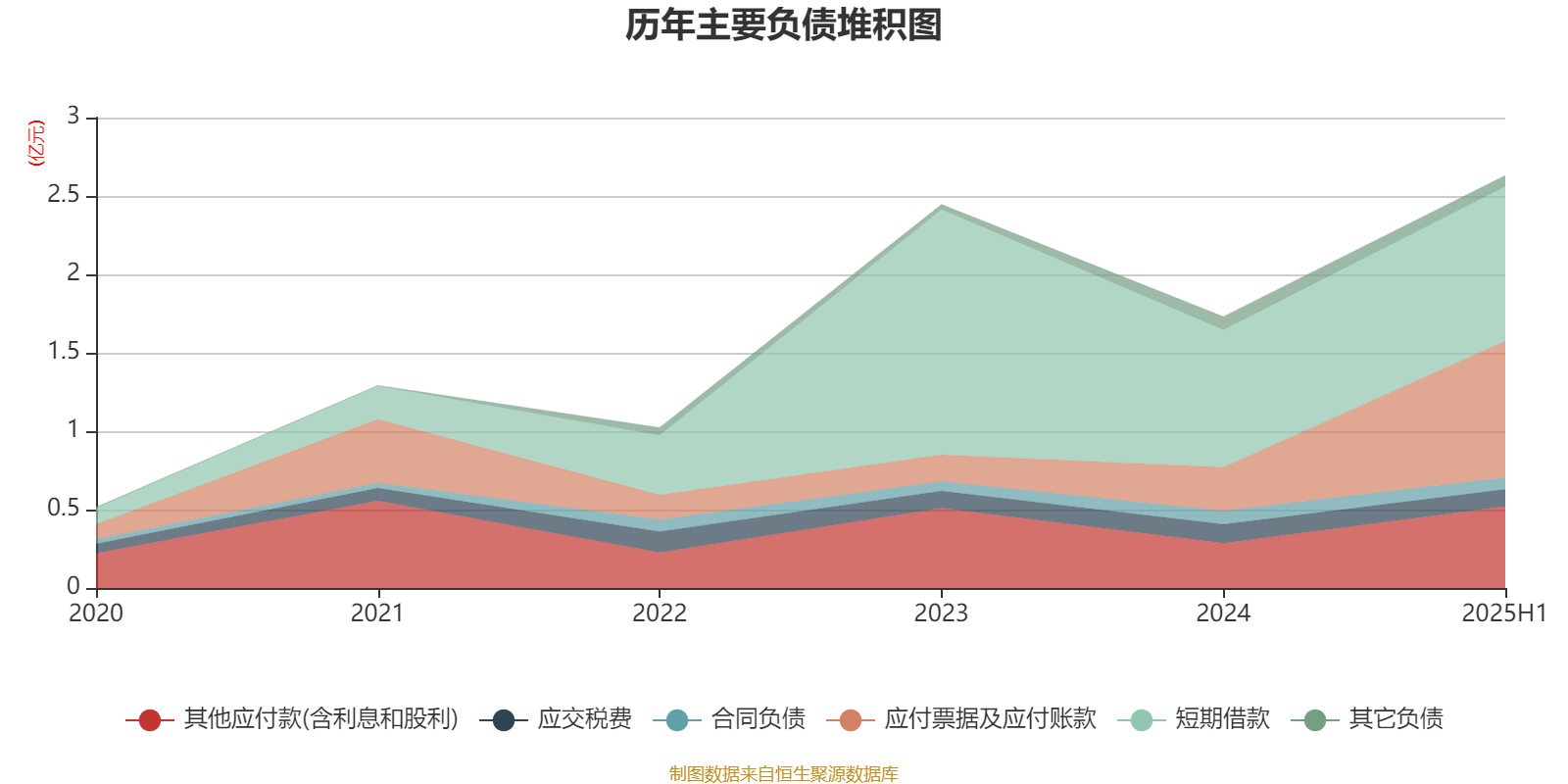 负债重大变化方面,截至2025年上半年,公司应付票据及应付账款较上期末增加212.3%,占公司总资产比重上升9.29个百分点;其他应付款(含利息和股利)较上期末增加81.74%,占公司总资产比重上升3.29个百分点;应交税费较上期末减少9.22%,占公司总资产比重下降0.44个百分点;合同负债较上期末减少13.01%,占公司总资产比重下降0.37个百分点。