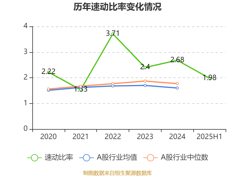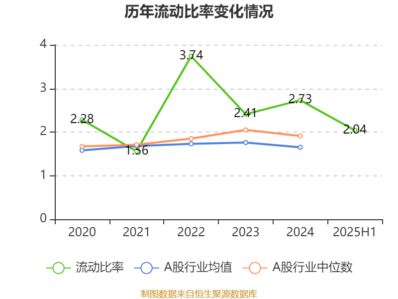 2025年上半年,公司流动比率为2.04,速动比率为1.98。