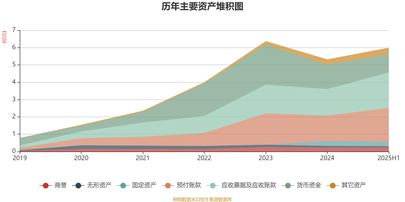 资产重大变化方面,截至2025年上半年,公司货币资金较上期末减少24.75%,占公司总资产比重下降8.79个百分点;应收票据及应收账款较上期末增加33.8%,占公司总资产比重上升5.39个百分点;预付账款较上期末增加32.79%,占公司总资产比重上升4.91个百分点;固定资产较上期末减少5.63%,占公司总资产比重下降0.86个百分点。