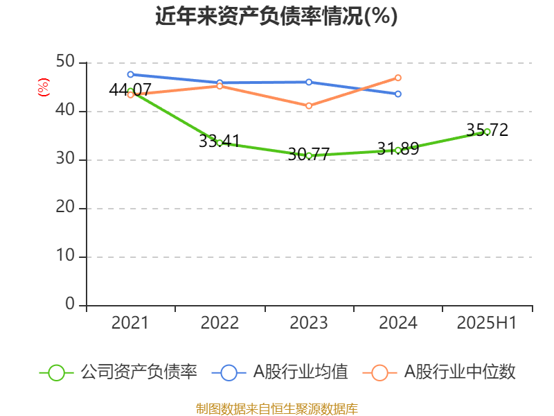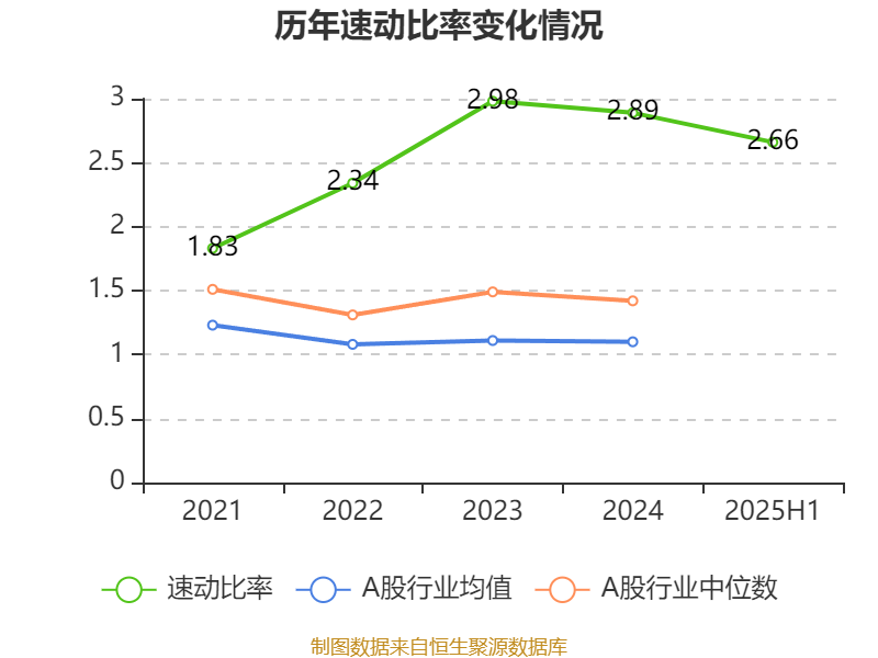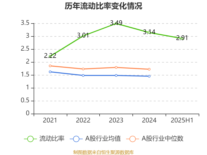 2025年上半年,公司流动比率为2.91,速动比率为2.66。