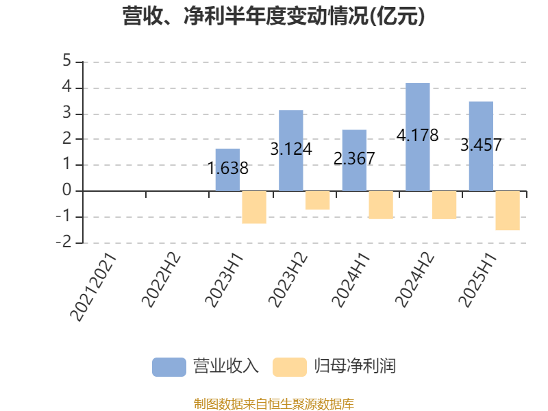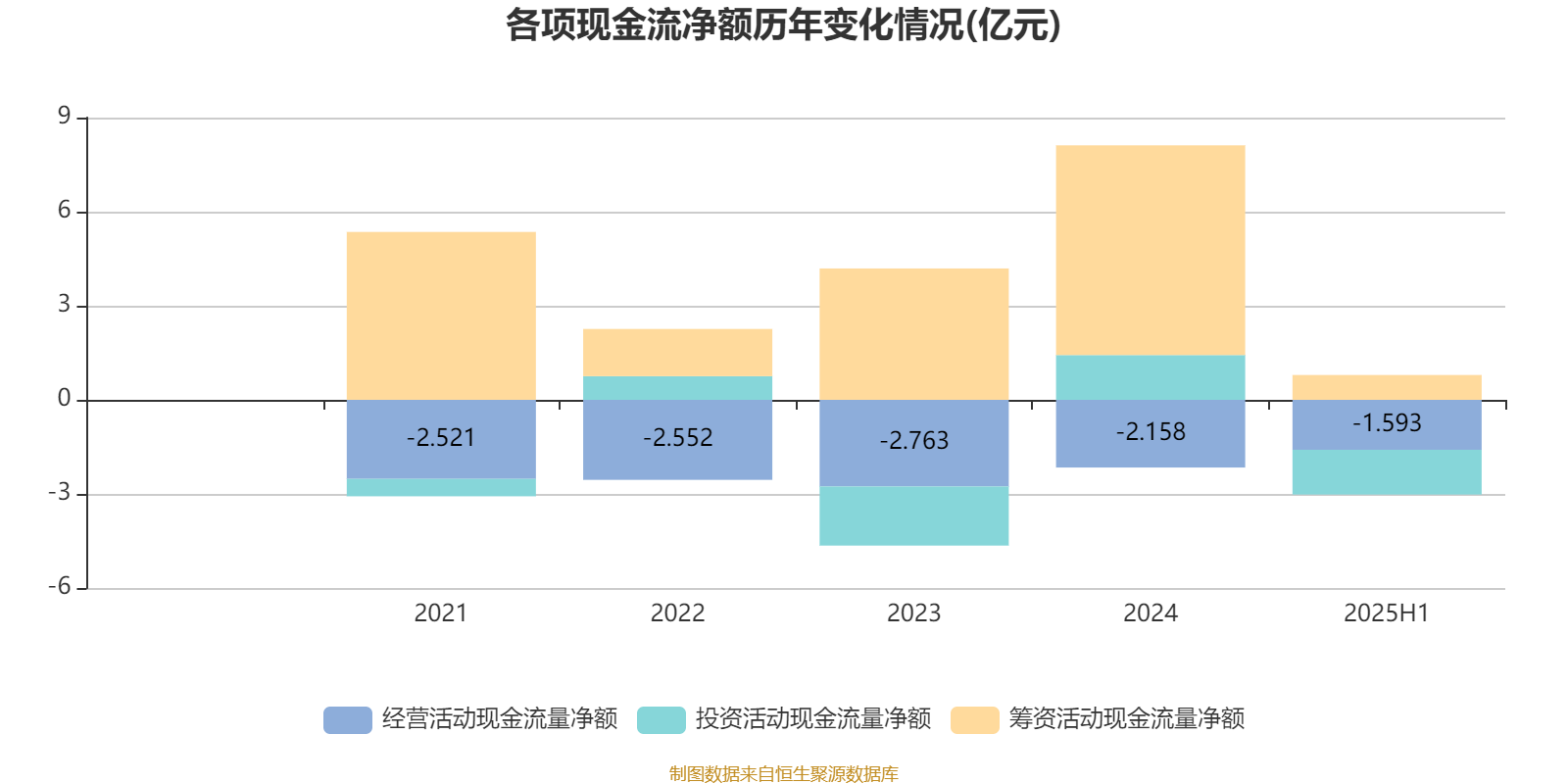 2025年上半年,公司经营活动现金流净额为-1.59亿元;筹资活动现金流净额7924.7万元;投资活动现金流净额-1.43亿元。