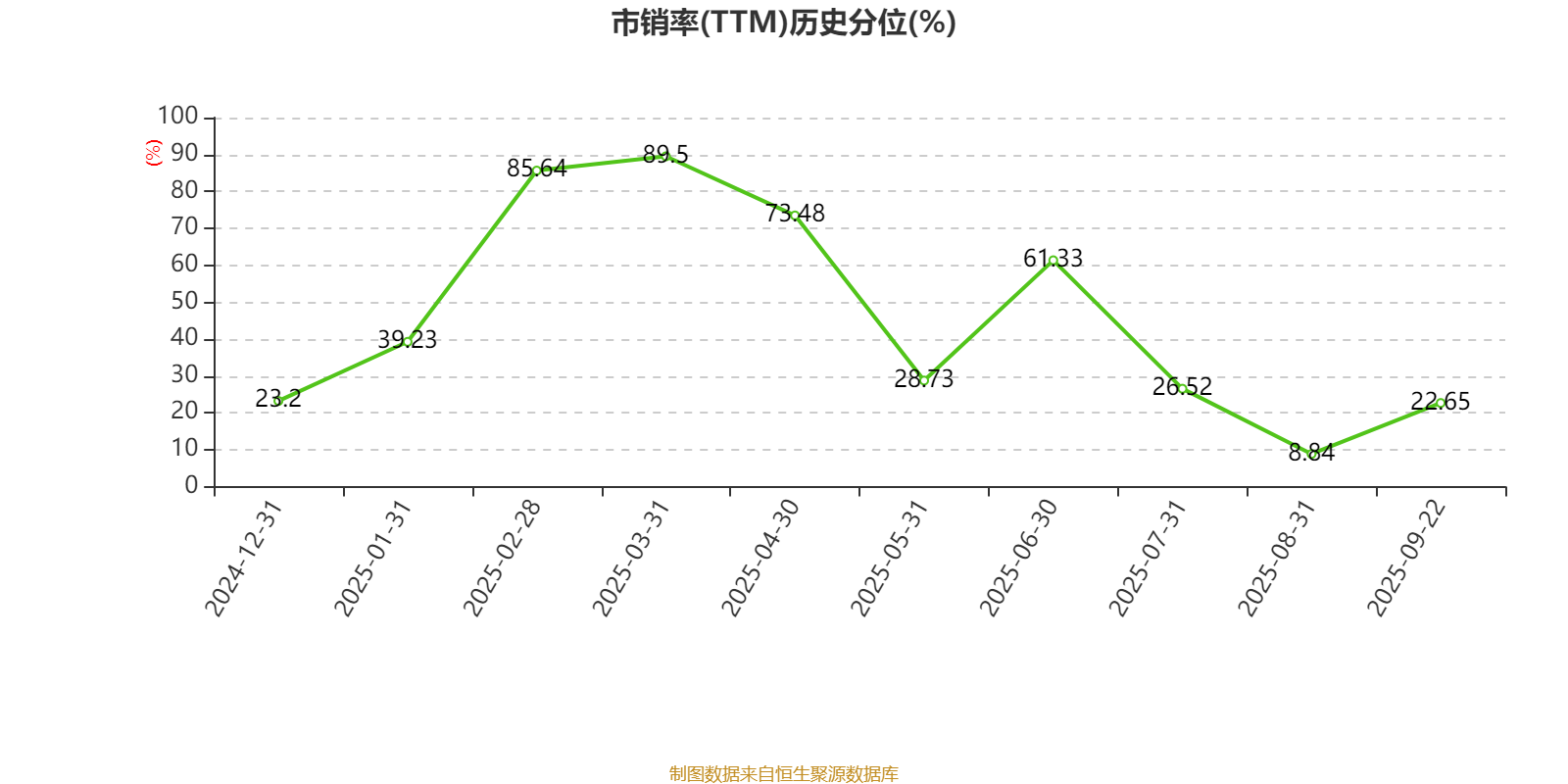 以9月22日收盘价计算,佑驾创新目前市净率(TTM)约9.8倍,市销率(TTM)约13.02倍。
