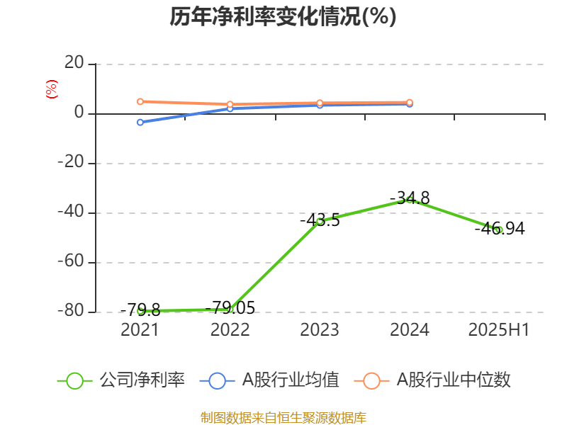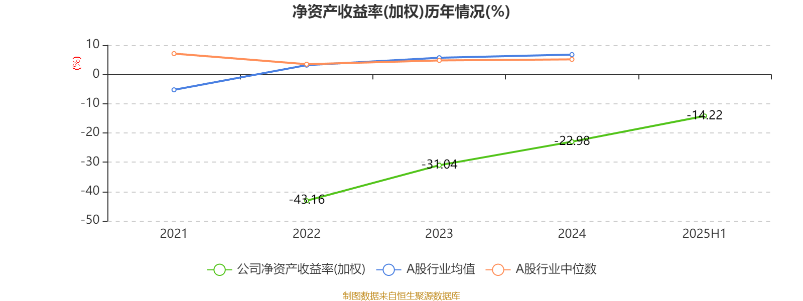 2025年上半年,公司平均净资产收益率为-14.22%,较上年同期上升1.46个百分点。