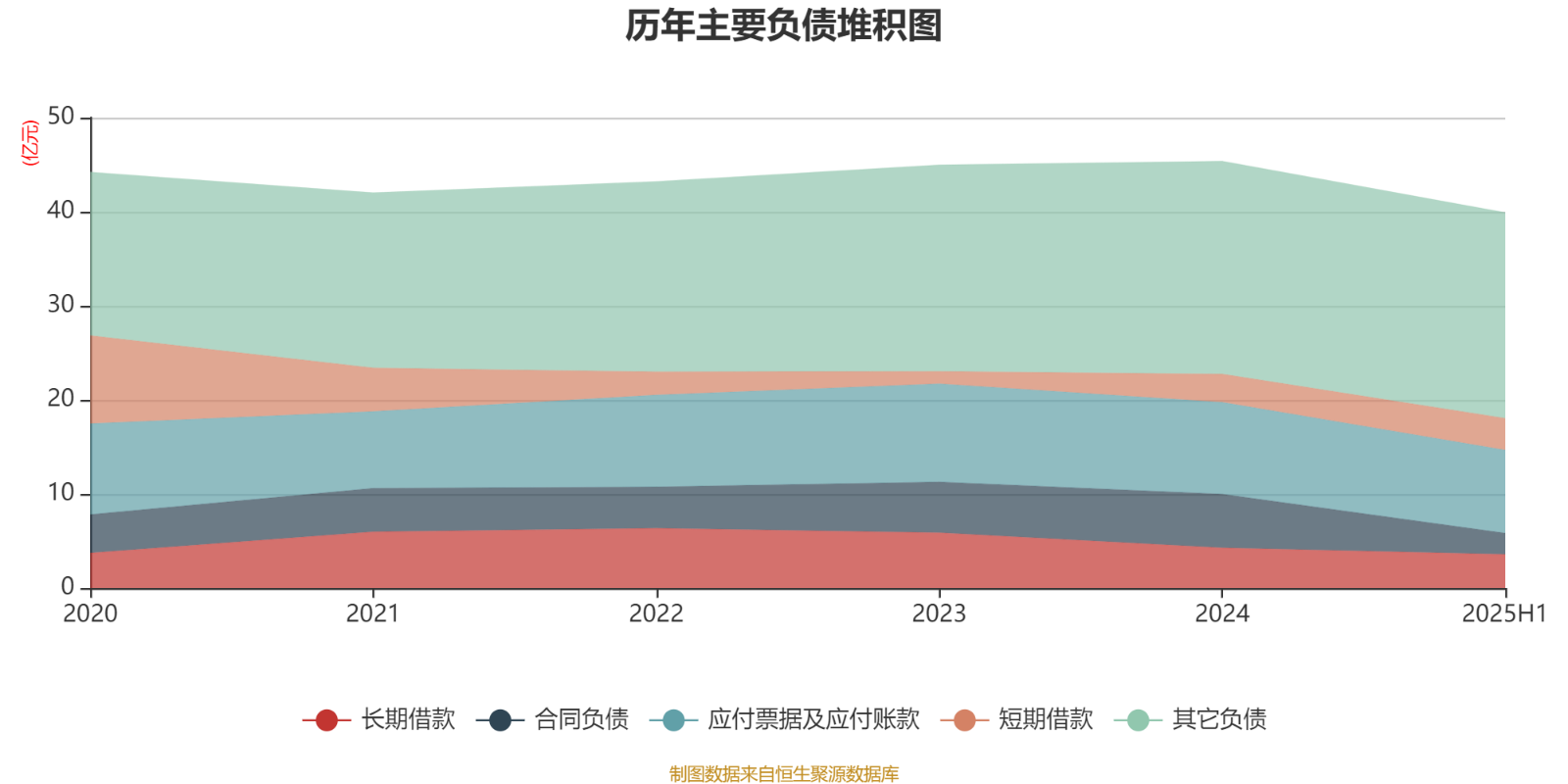 负债重大变化方面,截至2025年上半年,公司合同负债较上期末减少60.49%,占公司总资产比重下降5.49个百分点;短期借款较上期末增加12.96%,占公司总资产比重上升1.11个百分点;长期借款较上期末减少16.33%,占公司总资产比重下降0.68个百分点;应付票据及应付账款较上期末减少9.47%,占公司总资产比重下降0.35个百分点。
