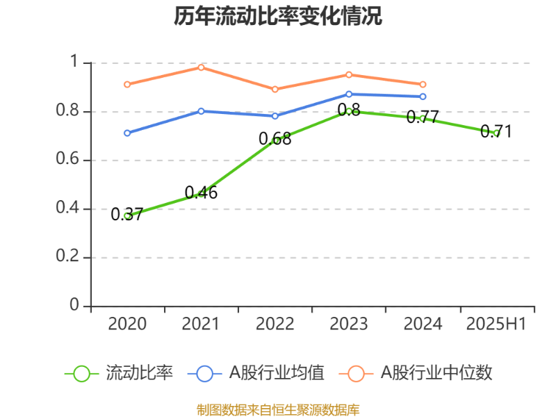 2025年上半年,公司流动比率为0.71,速动比率为0.69。