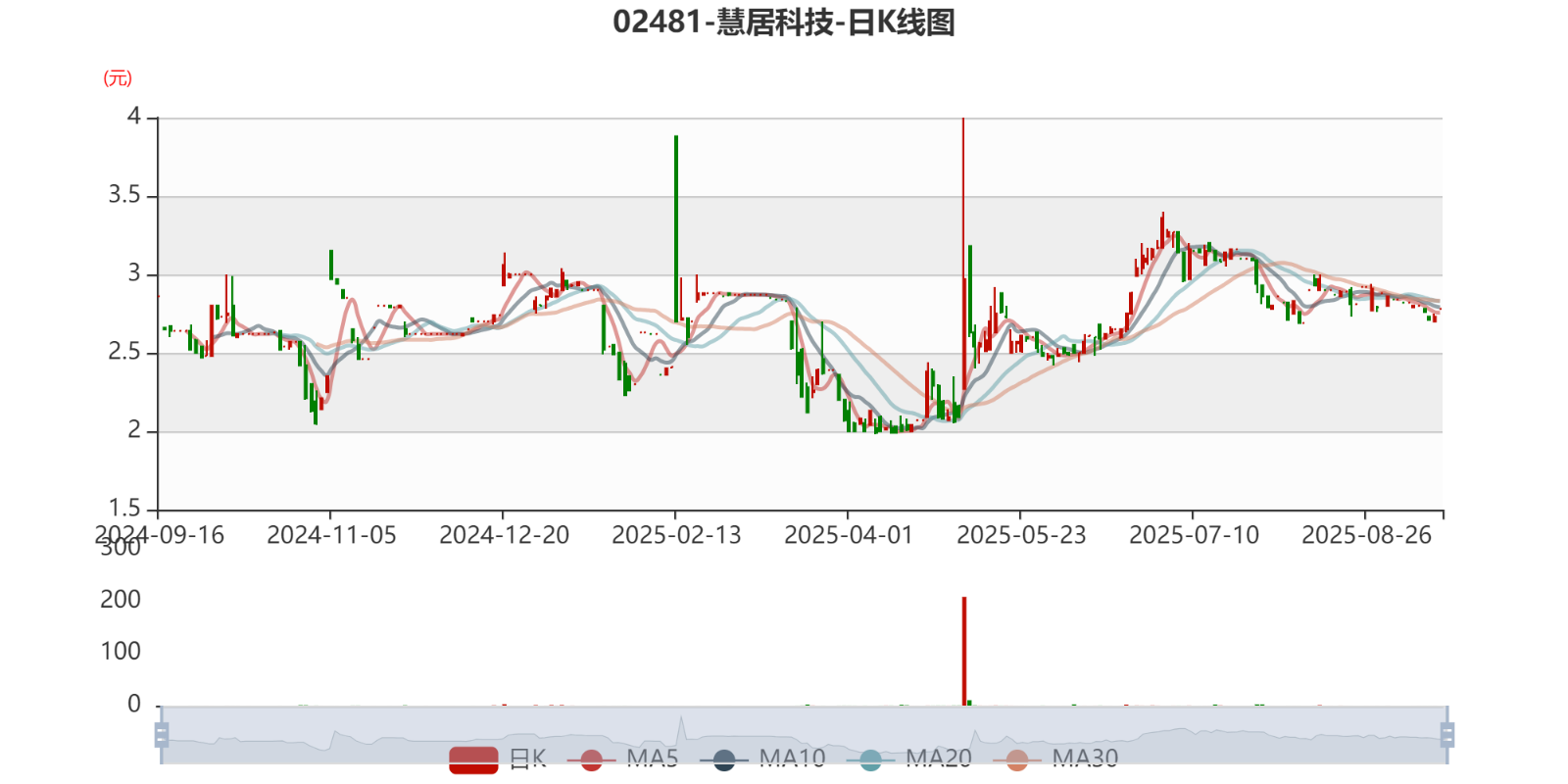 中证智能财讯慧居科技(02481)9月15日披露2025年中期报告。报告期内,公司实现营业收入7.6亿元,同比下降8.92%;归母净利润1.12亿元,同比下降0.49%;经营活动产生的现金流量净额为-1.39亿元,上年同期为-1.55亿元;据报告显示,慧居科技基本每股收益为0.37元,平均净资产收益率为9.34%。
