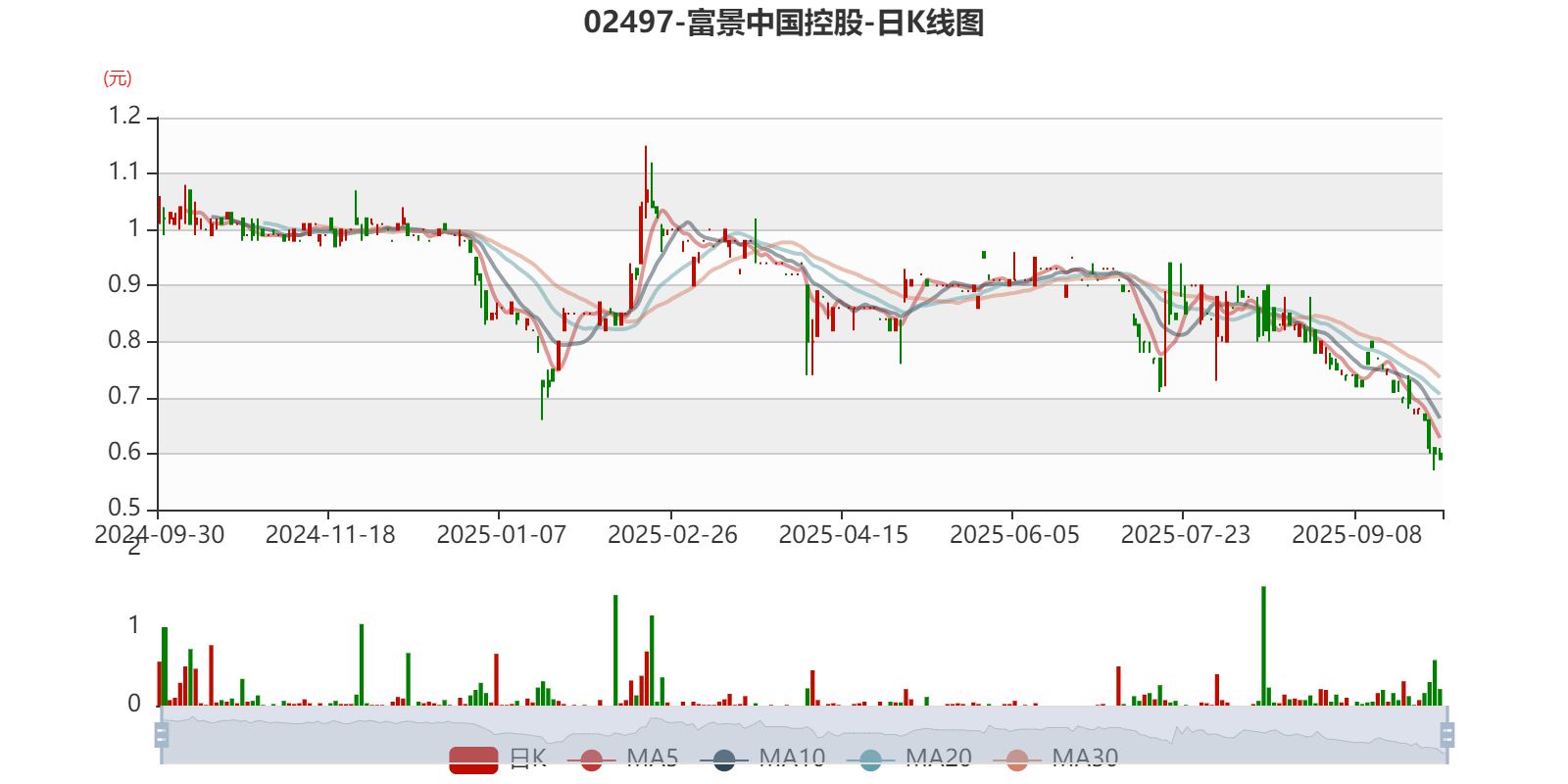 以9月30日收盘价计算,富景中国控股目前市盈率(TTM)约3.93倍,市净率(TTM)约0.53倍,市销率(TTM)约1.38倍。