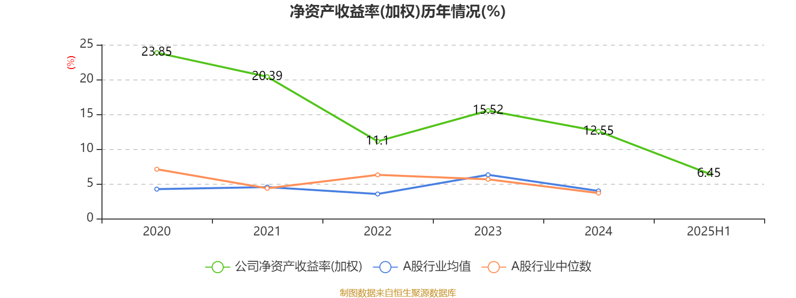 2025年上半年,公司平均净资产收益率为6.45%,较上年同期上升2.65个百分点。