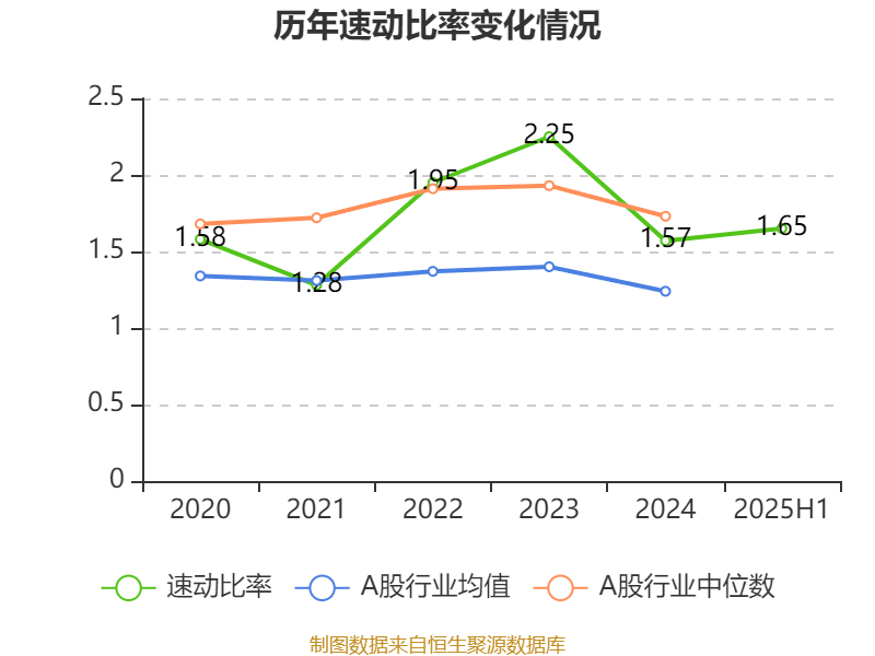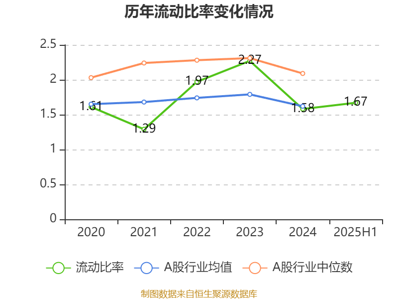 2025年上半年,公司流动比率为1.67,速动比率为1.65。