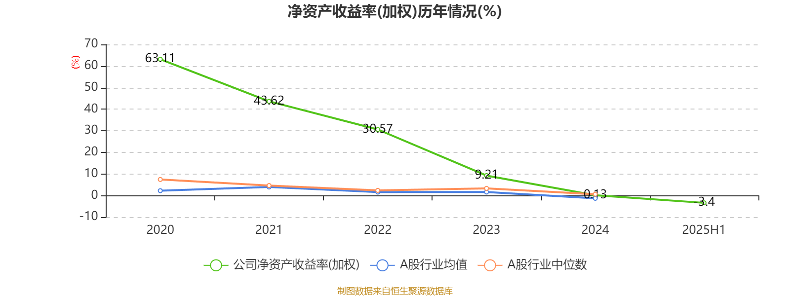 2025年上半年,公司平均净资产收益率为-3.4%,较上年同期上升1.39个百分点。