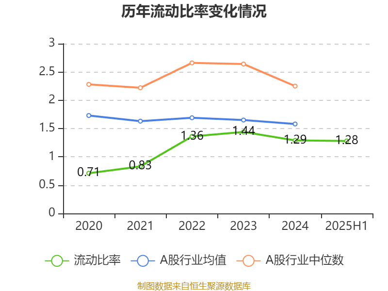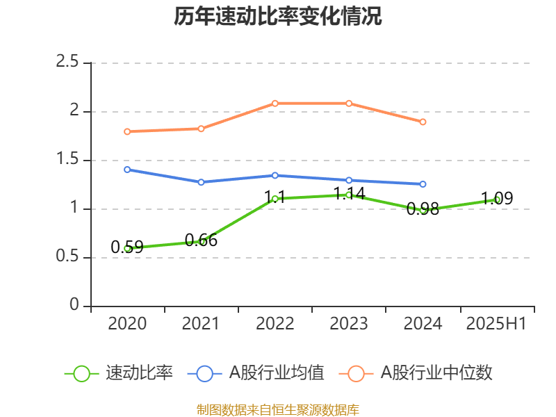 2025年上半年,公司流动比率为1.28,速动比率为1.09。