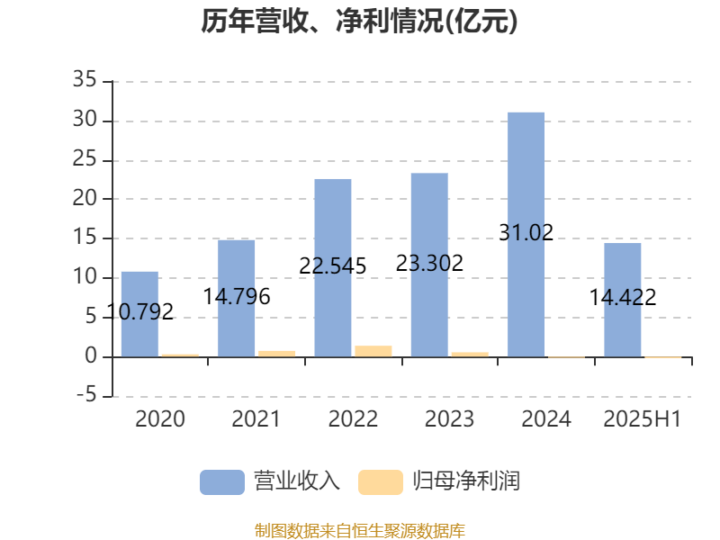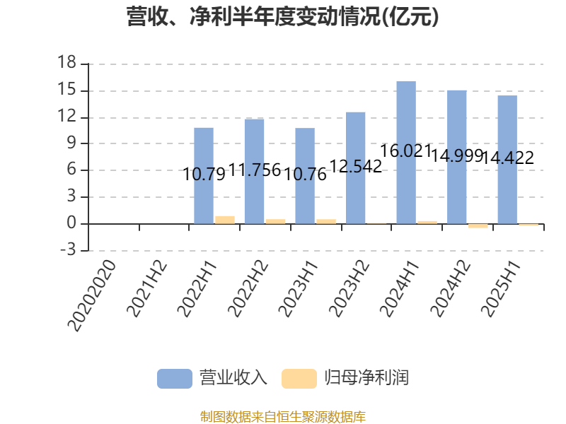 中证智能财讯金源氢化(02502)9月22日披露2025年中期报告。报告期内,公司实现营业收入14.42亿元,同比下降9.98%;归母净利润亏损2023.1万元,上年同期盈利3023.3万元;经营活动产生的现金流量净额为4295万元,同比下降58.78%;据报告显示,金源氢化基本每股收益为-0.02元,平均净资产收益率为-2.09%。