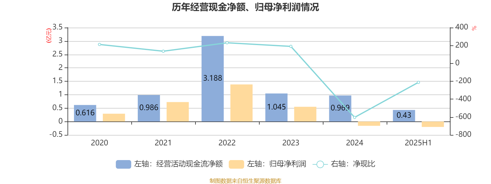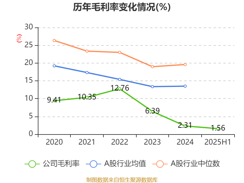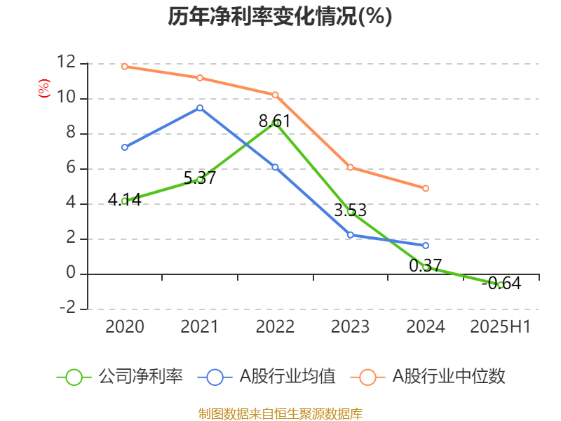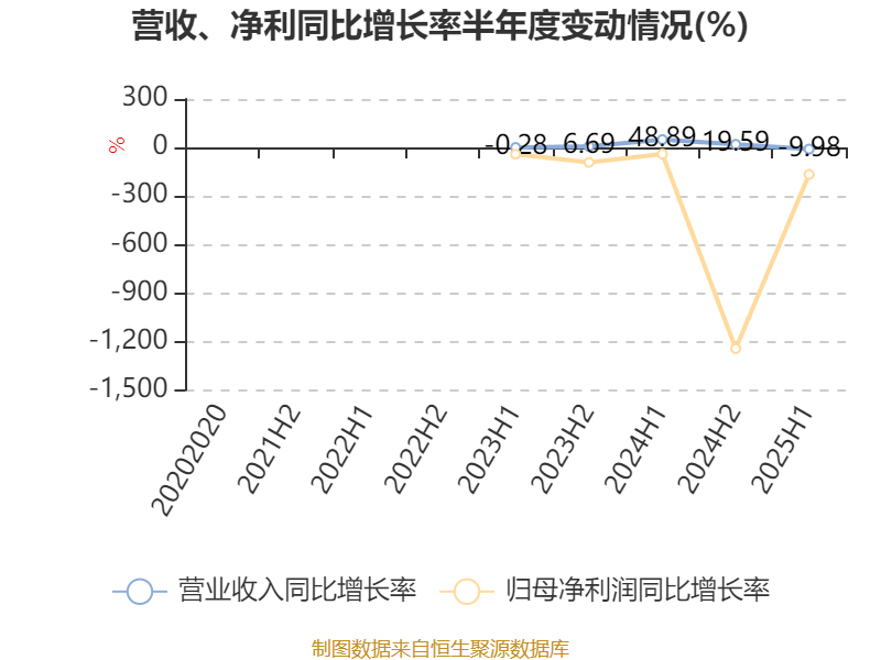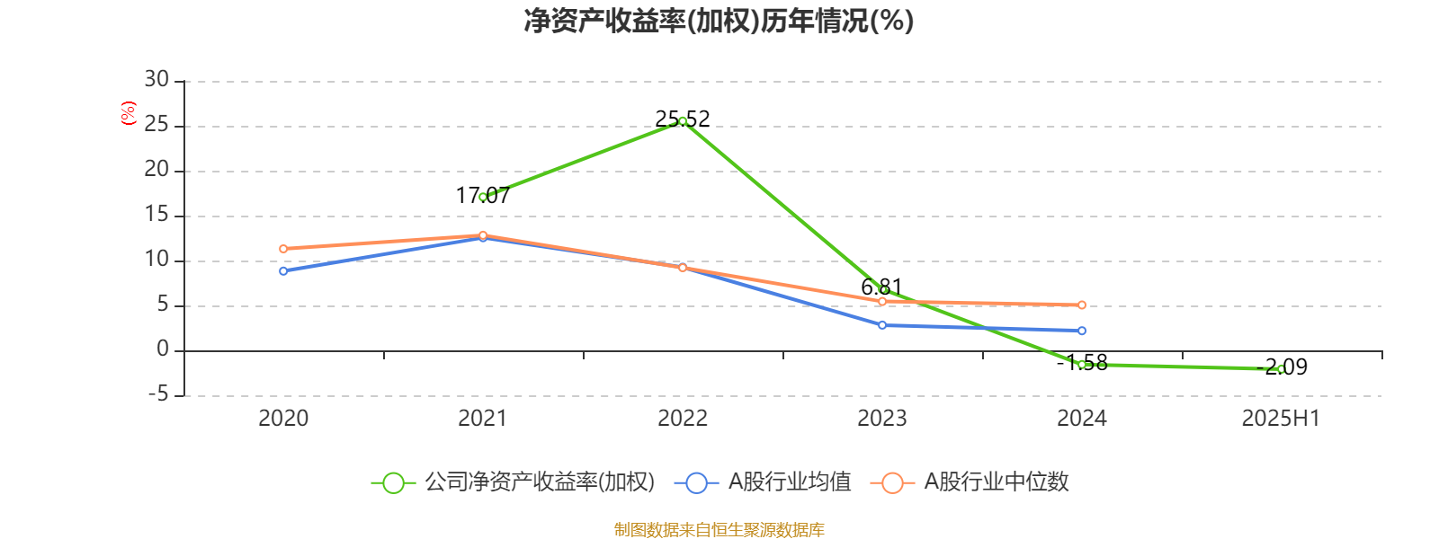 2025年上半年,公司平均净资产收益率为-2.09%,较上年同期下降5.02个百分点。