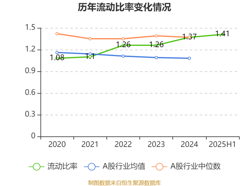 2025年上半年,公司流动比率为1.41,速动比率为1.41。