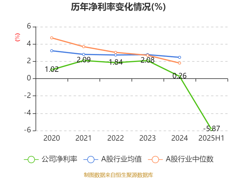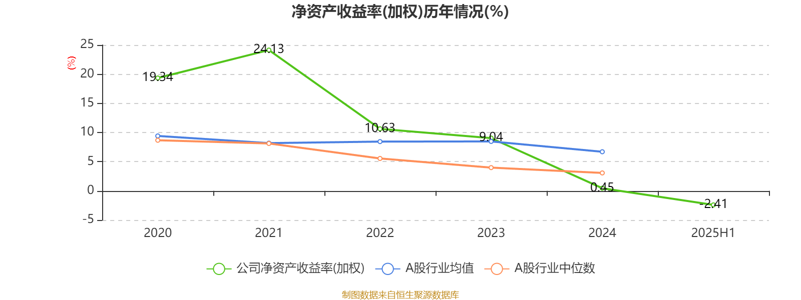 2025年上半年,公司平均净资产收益率为-2.41%,较上年同期下降2.49个百分点。