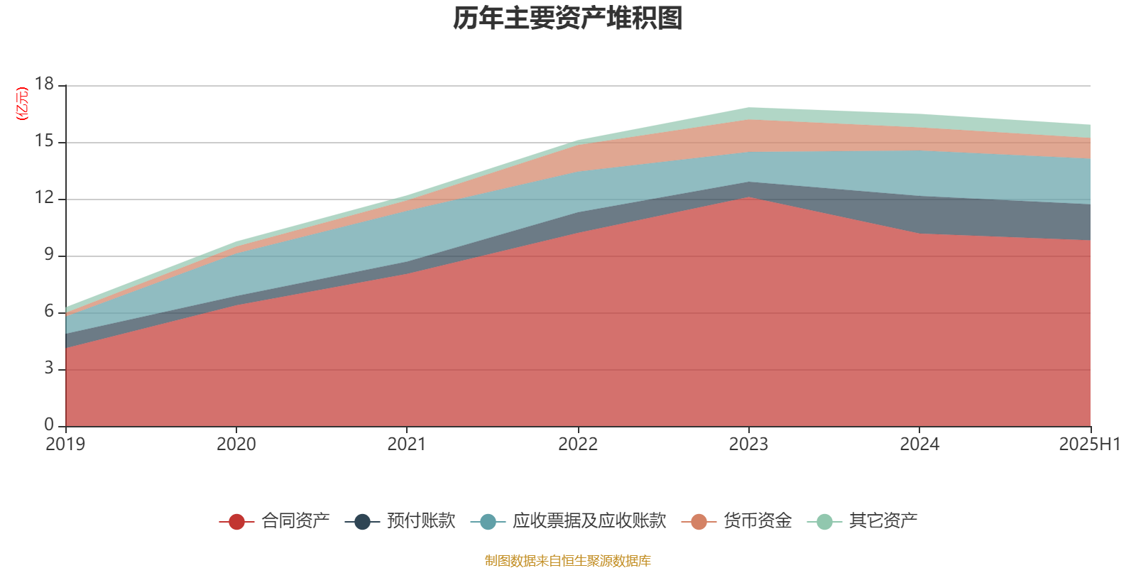 资产重大变化方面,截至2025年上半年,公司应收票据及应收账款较上期末增加0.34%,占公司总资产比重上升0.58个百分点;货币资金较上期末减少10.21%,占公司总资产比重下降0.51个百分点;递延所得税资产较上期末增加7.25%,占公司总资产比重上升0.07个百分点;合同资产较上期末减少3.58%,占公司总资产比重下降0.06个百分点。
