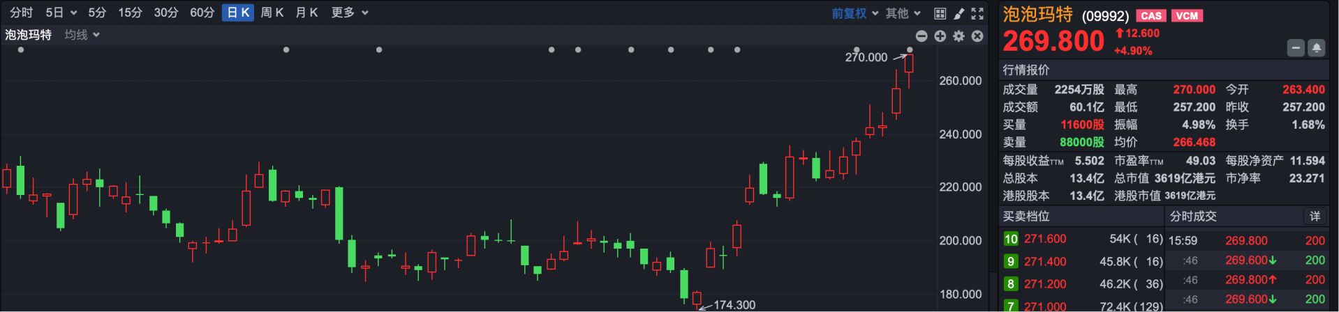 新消费概念继续回暖,泡泡玛特(HK09992)涨超4%。
