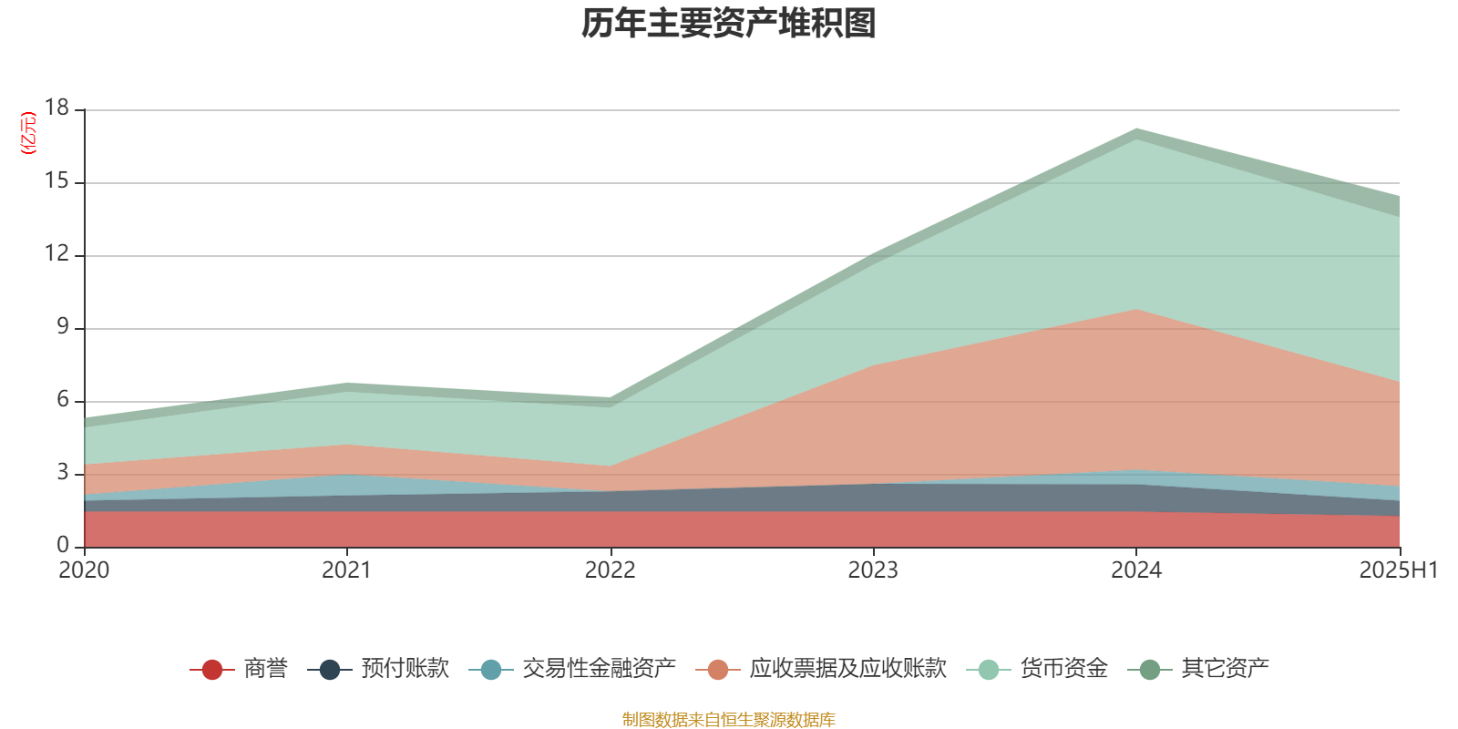 资产重大变化方面,截至2025年上半年,公司应收票据及应收账款较上期末减少35%,占公司总资产比重下降8.59个百分点;货币资金较上期末减少3.09%,占公司总资产比重上升6.36个百分点;预付账款较上期末减少44.45%,占公司总资产比重下降2.2个百分点;交易性金融资产较上期末减少0.09%,占公司总资产比重上升0.67个百分点。