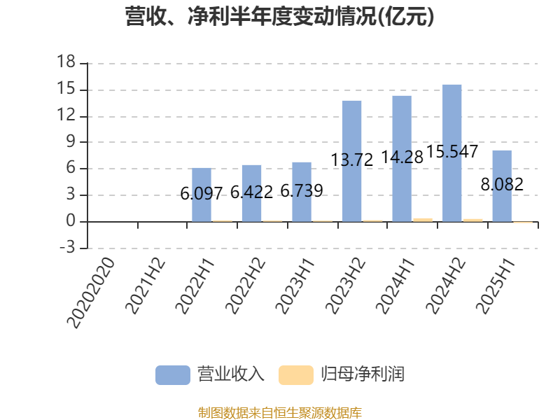中证智能财讯泛远国际(02516)9月25日披露2025年中期报告。报告期内,公司实现营业收入8.08亿元,同比下降43.4%;归母净利润亏损1435万元,上年同期盈利3809.3万元;据报告显示,泛远国际基本每股收益为-0.0185元,平均净资产收益率为-2.04%。