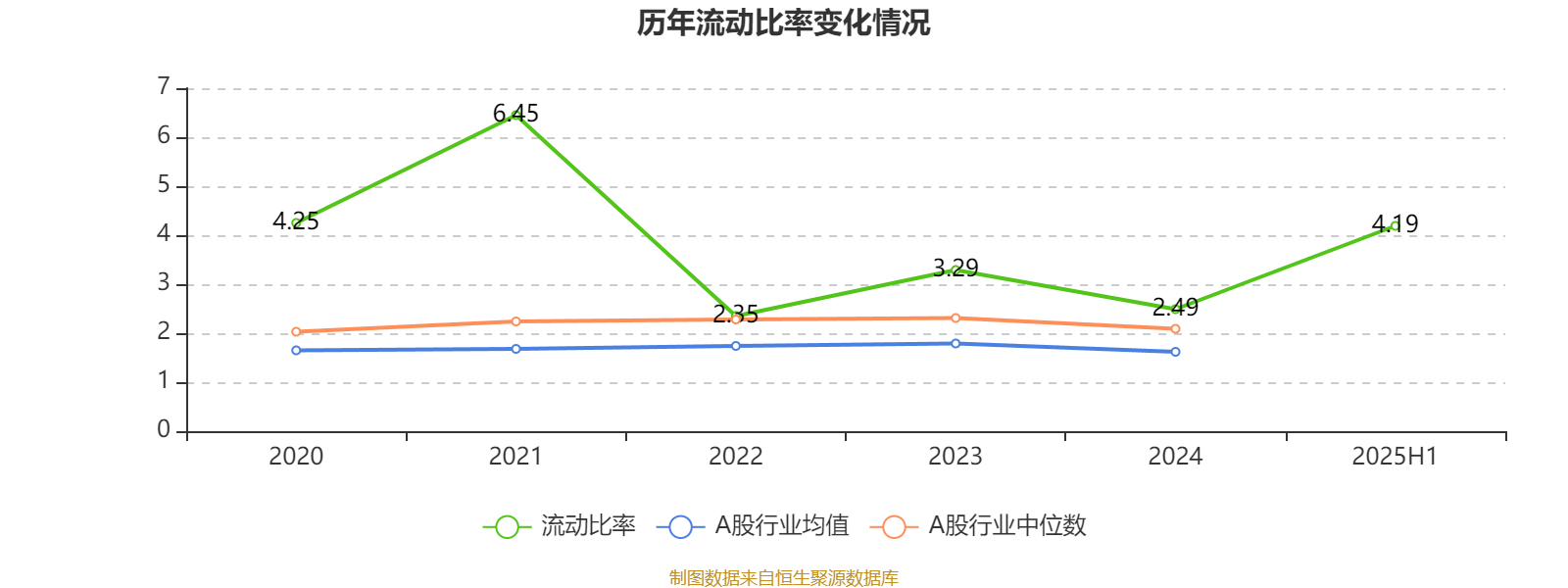 2025年上半年,公司流动比率为4.19。