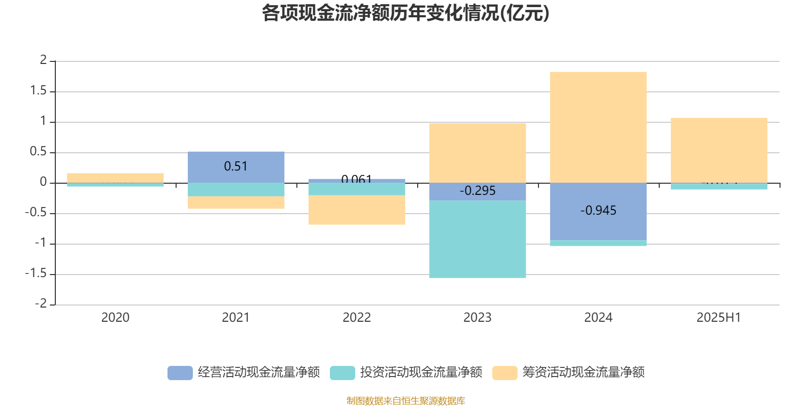 2025年上半年,公司经营活动现金流净额为-193.4万元;筹资活动现金流净额1.06亿元;投资活动现金流净额-920万元。
