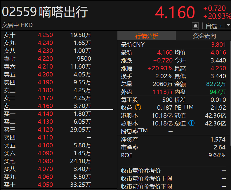 港股异动 | 嘀嗒出行一度涨超23% 年内涨幅超过96%