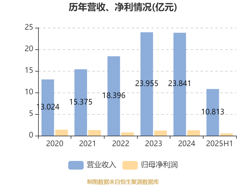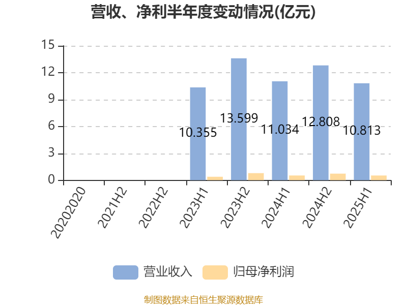 中证智能财讯海螺材料科技(02560)9月26日披露2025年中期报告。报告期内,公司实现营业收入10.81亿元,同比下降2%;归母净利润5236.4万元,同比下降0.55%;据报告显示,海螺材料科技基本每股收益为0.09元,平均净资产收益率为4.57%。