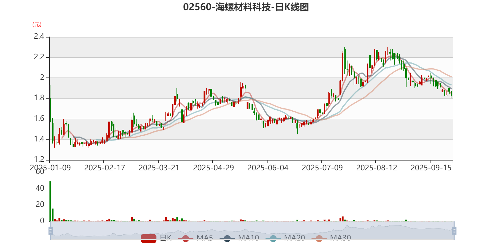 以9月26日收盘价计算,海螺材料科技目前市盈率(TTM)约7.72倍,市净率(TTM)约0.73倍,市销率(TTM)约0.41倍。