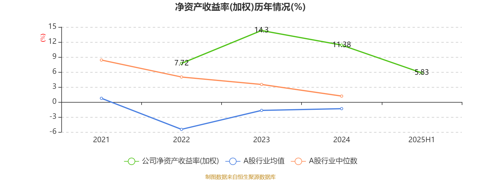 2025年上半年,公司平均净资产收益率为5.83%,较上年同期下降5.2个百分点。