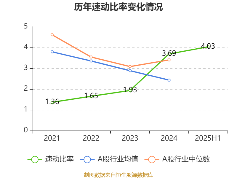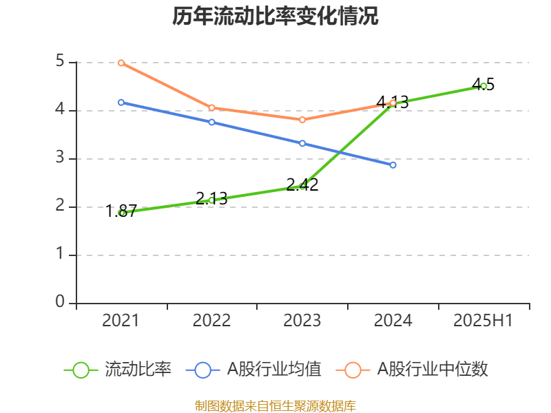 2025年上半年,公司流动比率为4.50,速动比率为4.03。