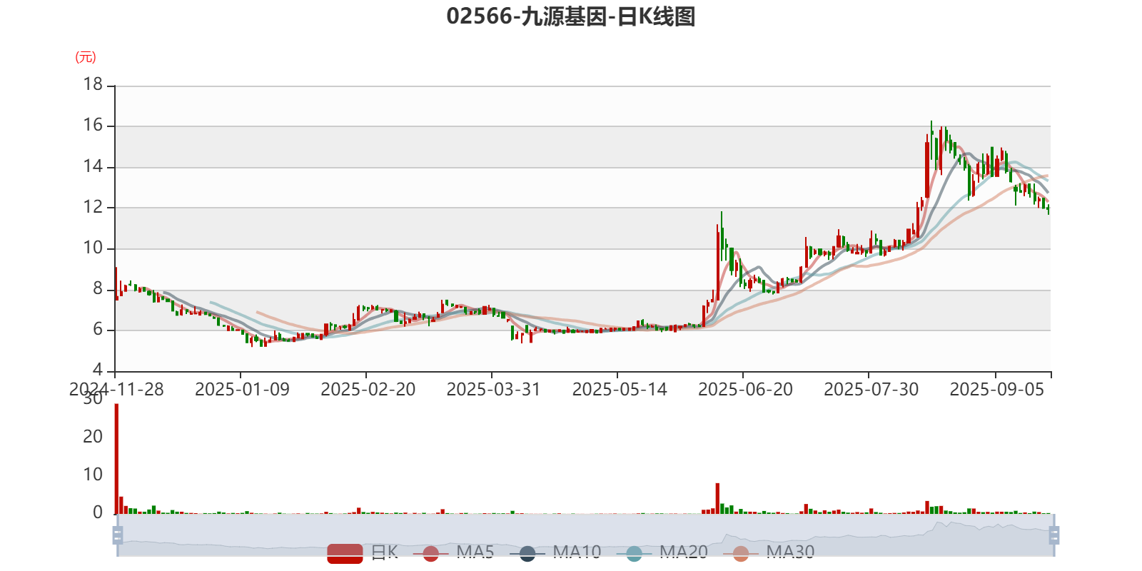 中证智能财讯九源基因(02566)9月23日披露2025年中期报告。报告期内,公司实现营业收入6.39亿元,同比下降9.05%;归母净利润9017.4万元,同比下降14.4%;经营活动产生的现金流量净额为1251.8万元,上年同期为-1253.7万元;据报告显示,九源基因基本每股收益为0.37元,平均净资产收益率为5.83%。