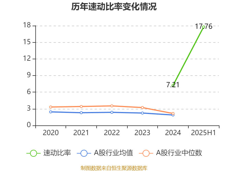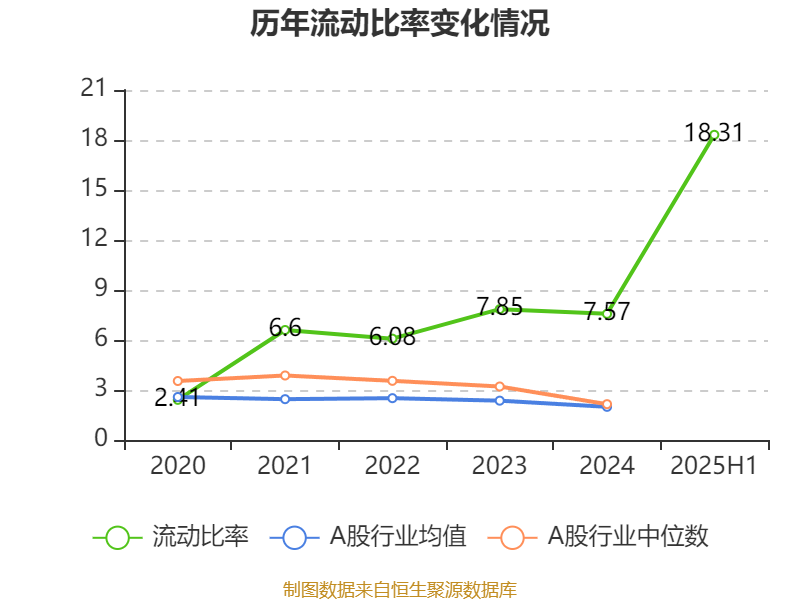 2025年上半年,公司流动比率为18.31,速动比率为17.76。