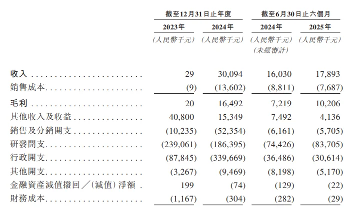 于2023年、2024年以及截至2024年及2025年6月30日止六个月,轩竹生物的收入分别为人民币29,000元、人民币30.1百万元、人民币16.0百万元及人民币17.9百万元。于2023年、2024年以及截至2024年及2025年6月30日止六个月,轩竹生物的亏损净额分别为人民币300.6百万元、人民币556.4百万元、人民币111.0百万元及人民币110.9百万元,乃主要归因于商业化战略处于初期阶段及公司于往绩记录期间产生经营开支。