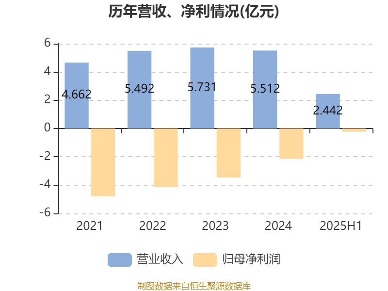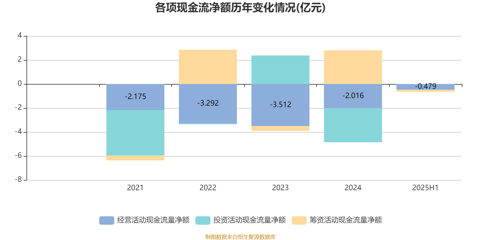 2025年上半年,公司经营活动现金流净额为-4792.7万元;筹资活动现金流净额-1656.5万元;投资活动现金流净额21.8万元。