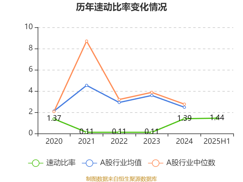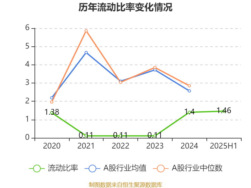 2025年上半年,公司流动比率为1.46,速动比率为1.44。