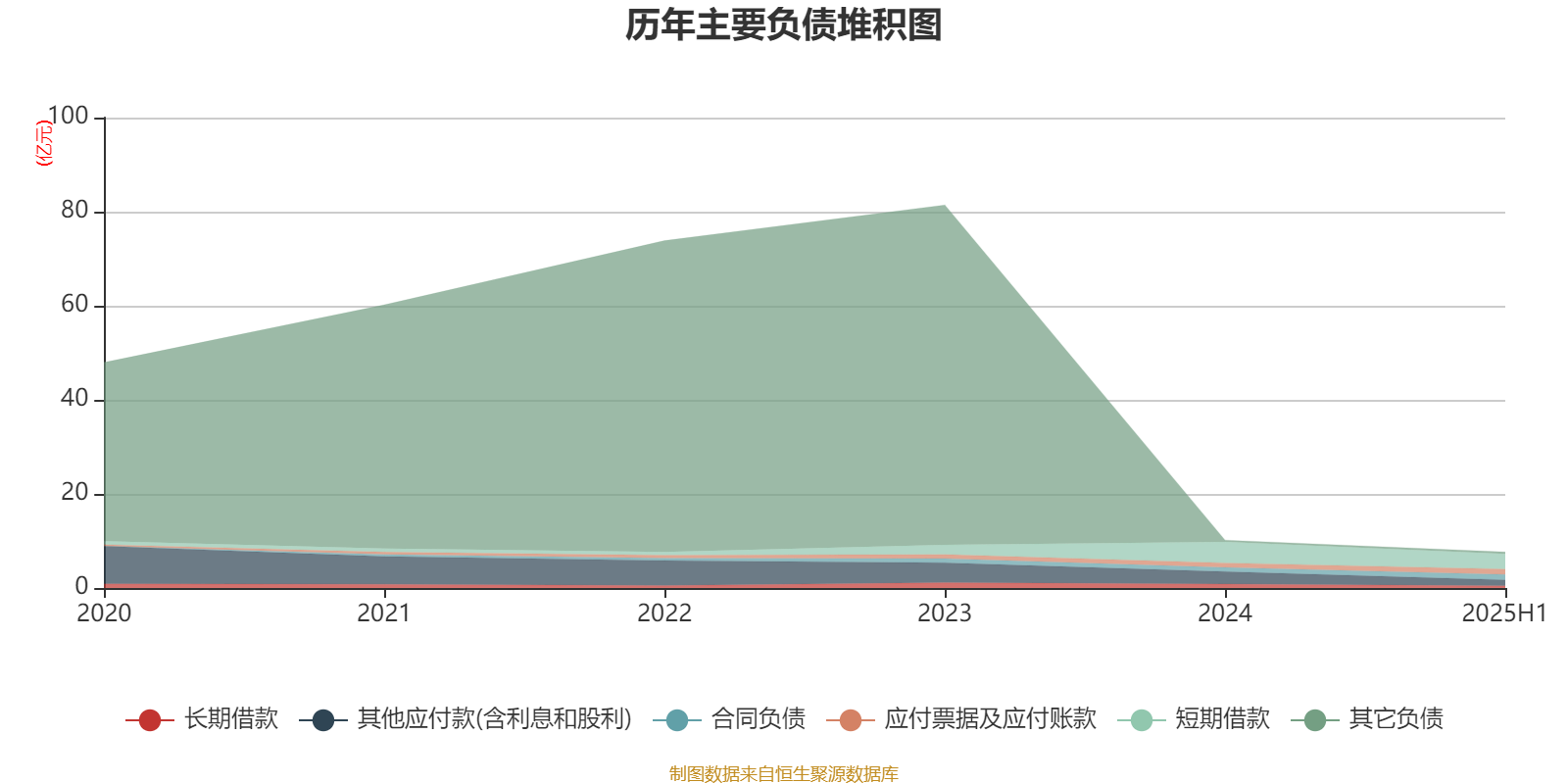 负债重大变化方面,截至2025年上半年,公司其他应付款(含利息和股利)较上期末减少51.92%,占公司总资产比重下降6.79个百分点;短期借款较上期末减少27.02%,占公司总资产比重下降3.61个百分点;合同负债较上期末增加30.69%,占公司总资产比重上升2.94个百分点;应付票据及应付账款较上期末增加16.6%,占公司总资产比重上升2.27个百分点。