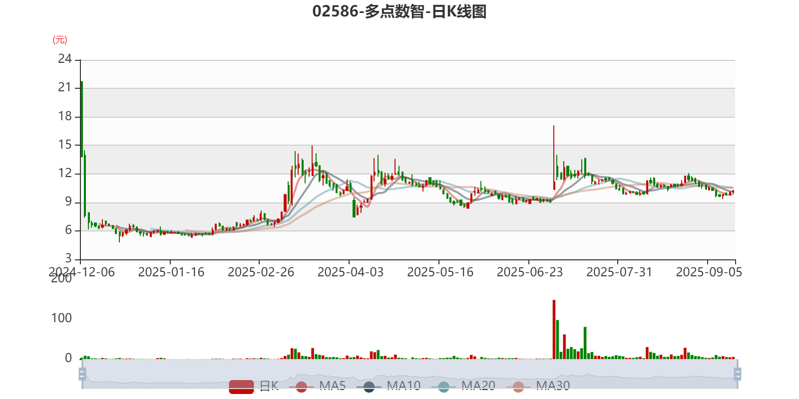 中证智能财讯多点数智(02586)9月16日披露2025年中期报告。报告期内,公司实现营业收入10.78亿元,同比增长14.83%;归母净利润6752.6万元,同比扭亏;据报告显示,多点数智基本每股收益为0.08元,平均净资产收益率为11.91%。