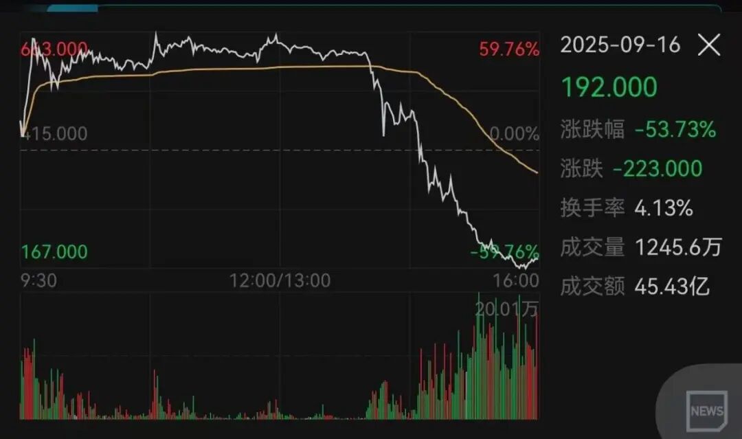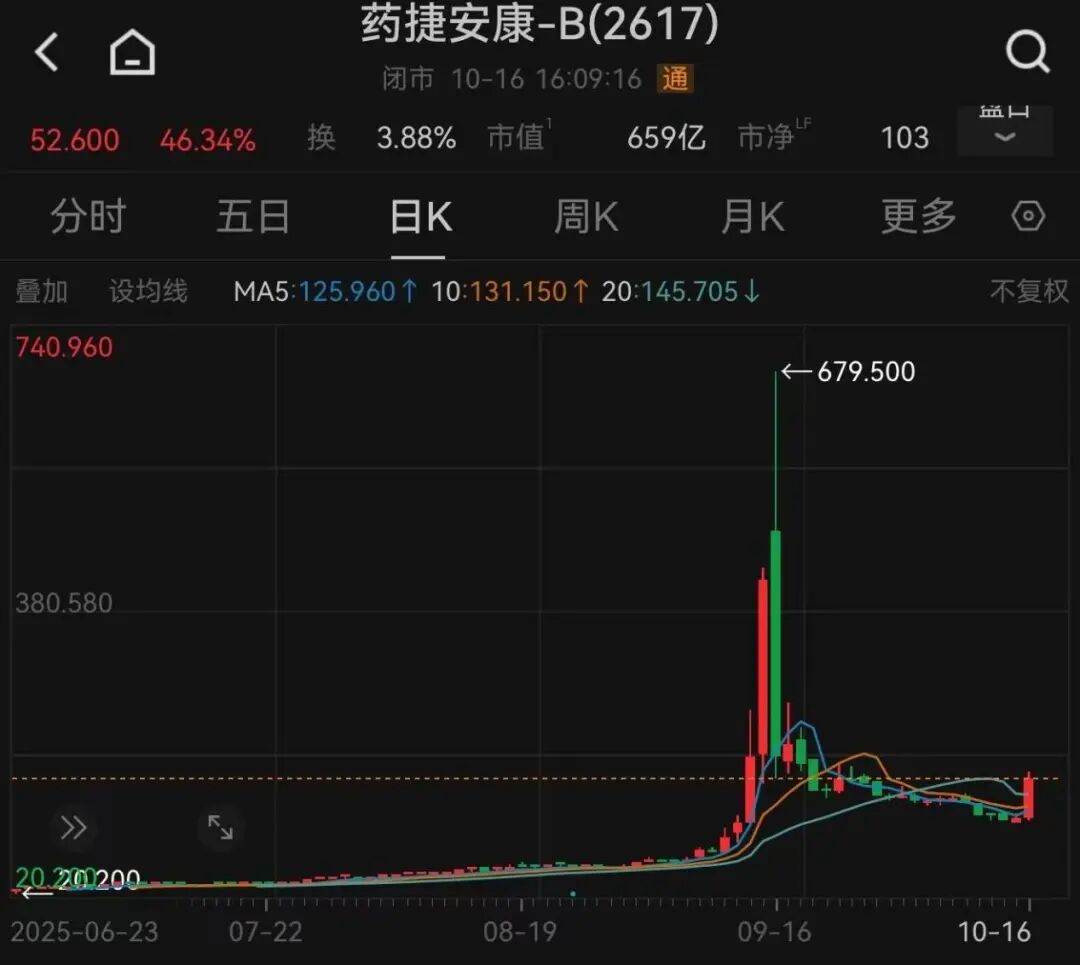就在一个月前,9月16日,药捷安康遭遇了股价崩盘,日内跌幅超过50%。