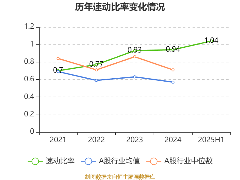 2025年上半年,公司流动比率为1.41,速动比率为1.04。