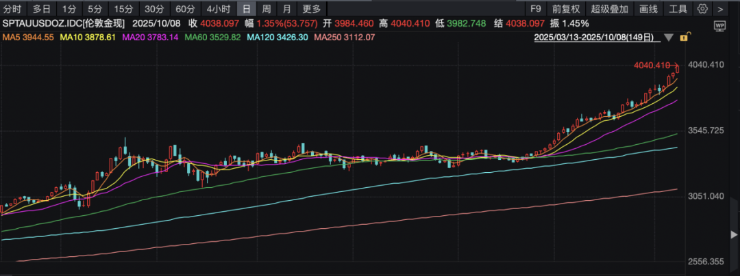 消息面上,10月8日,现货黄金突破4000美元/盎司大关,续创新高,年内涨幅超52%。
