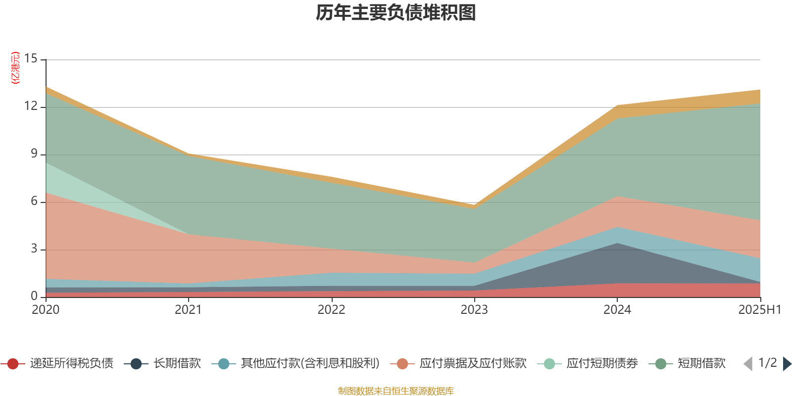负债重大变化方面,截至2025年上半年,公司长期借款较上期末减少96.21%,占公司总资产比重下降13.48个百分点;短期借款较上期末增加50.39%,占公司总资产比重上升13.4个百分点;其他应付款(含利息和股利)较上期末增加46.53%,占公司总资产比重上升2.56个百分点;应付票据及应付账款较上期末增加23.9%,占公司总资产比重上升2.49个百分点。