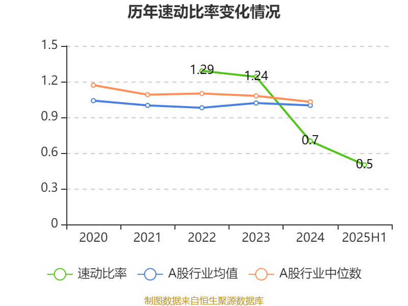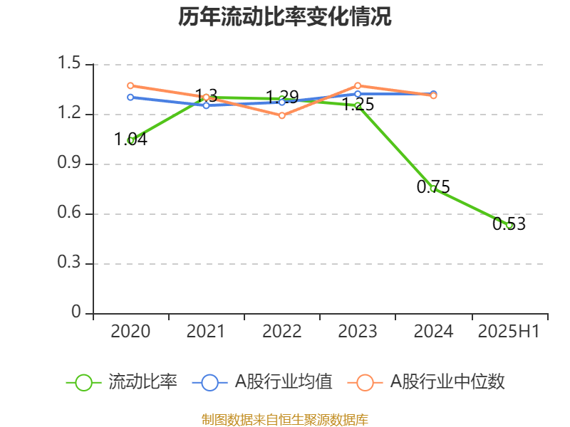 2025年上半年,公司流动比率为0.53,速动比率为0.5。